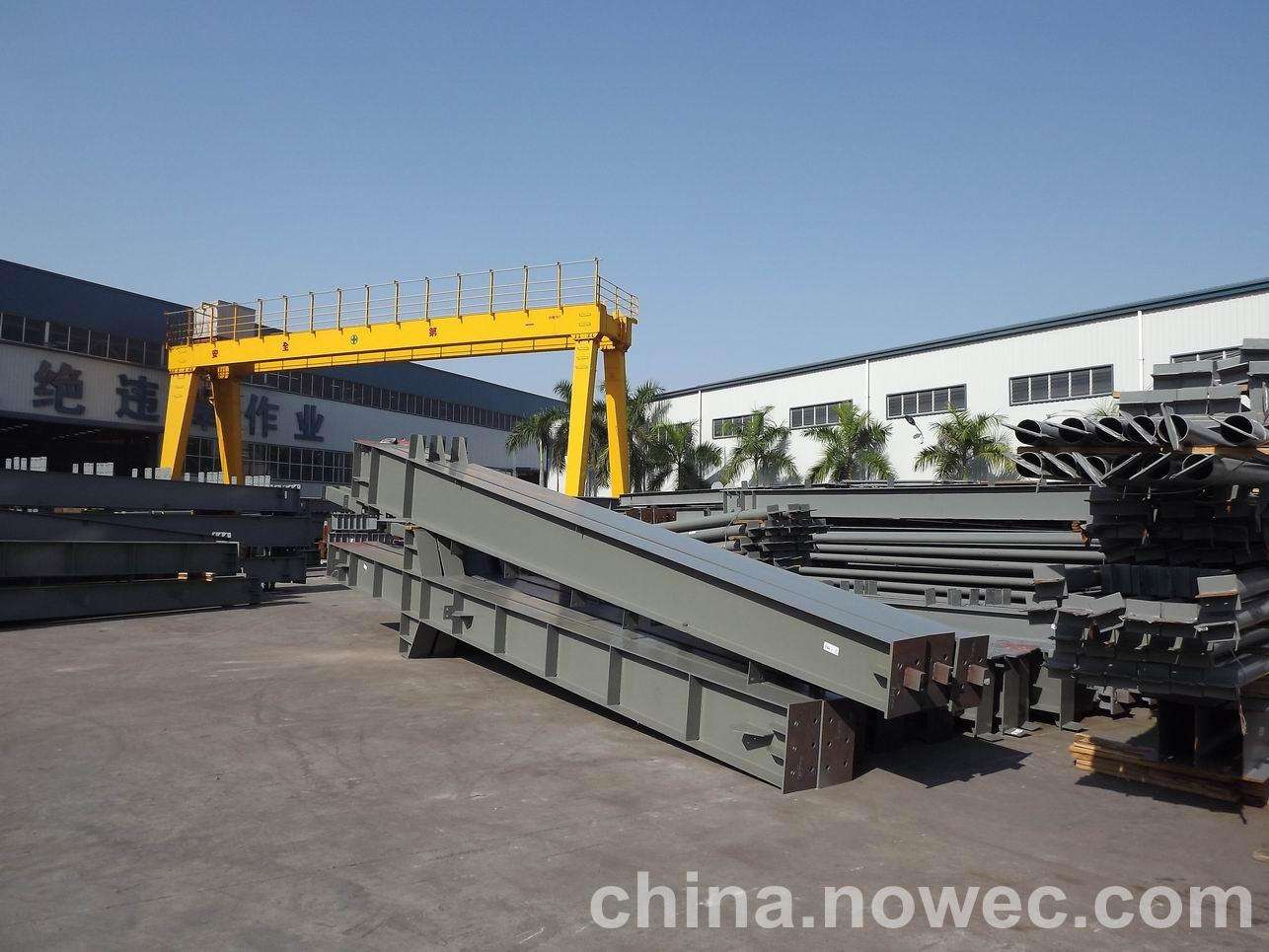条状单元一般沿长跨方向分割,其宽度约为1~3个网格,其长度为l2或l2/2(l2为短跨跨距)。块状单元一般沿咸阳网架平面纵横向分割成矩形或正方形单元。每个单元的重量以现有起重机能胜任为准。条(块)与条(块)之间可以直接拼装,也可空一网格在高空拼装。由于条(块)状单元是在地面拼装,因而高空作业量较高空散装法大为减少,拼装支架也减少很多,又能充分利用现有起重设备,故较经济。这种安装方法适用于分割后网架的钢度和受力状况改变较小的各类中小型网架,如两向正交正放四角锥、正放抽空四角锥等网架。